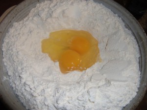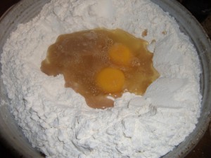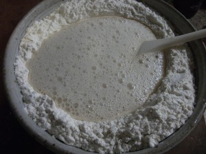 After the barm was mixed, I made a well into the flour