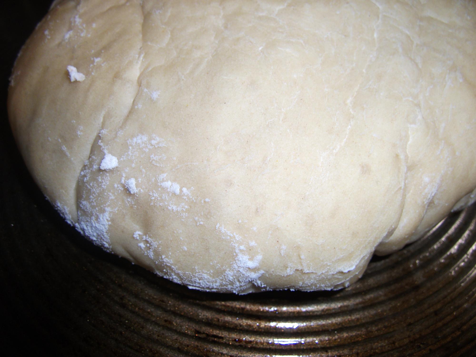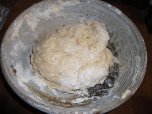 Next I put the well kneaded dough ball back into the bowl that was floured on the bottom (to prevent sticking) and covered with a cloth.