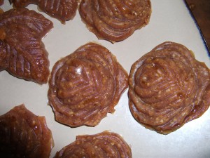 The molds used were simple candy molds of silicon and not the metal or Birchwood molds suggested. I don’t have the metal casting skill or wood carving skill to attempt anything like that. As for the coloring, the candies came out a really nice dark amber and any saffron painting would have been lost as to delicate.