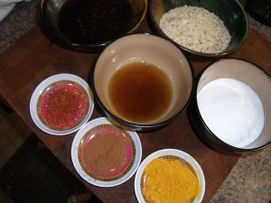 All the ingredients gathered in one place. For candies and quick dishes, it’s always a good idea to have everything right by the stove and ready to go in the amounts you want.