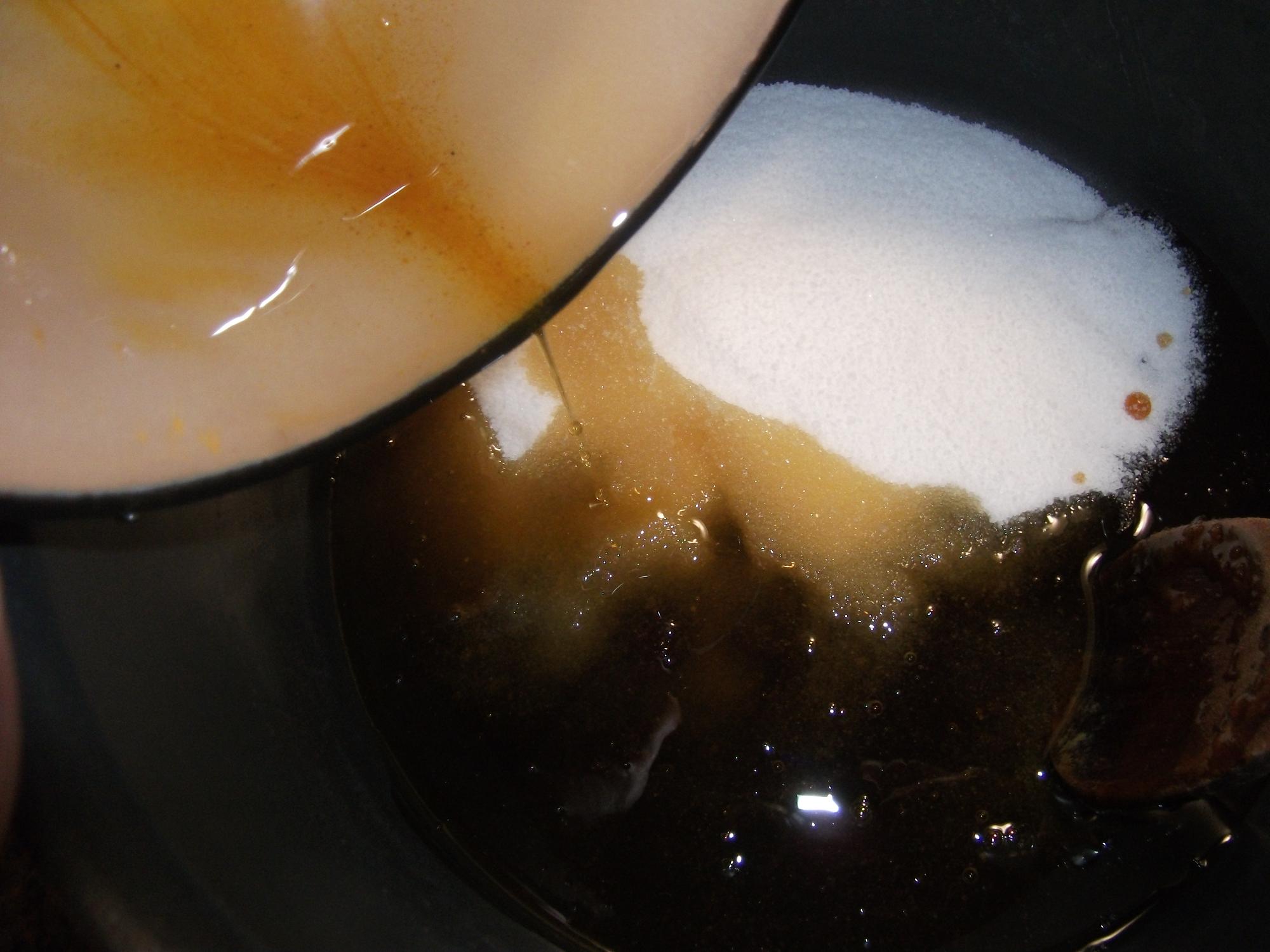 The mixture was boiled till reaching the soft ball stage of candy making.