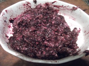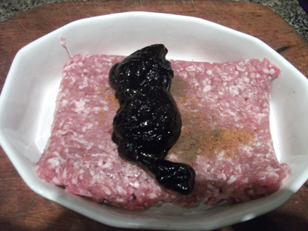 Here I put in about 1/4 to 1/3 cup of black raspberry jam. A quick (and available) substitute for raisins that would at least give me an idea of what raisins would taste like in the finial cooking. (Remember this was the trial cooking here). Improvising is very period so don’t be afraid of having to add or subtract if necessity dictates.