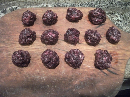 The balls were greeted with great enthusiasm as were the sauces. The balls were not served the same day they were made but the next day and were still moist and very tasty for having been essentially boiled the previous day and served cold.
