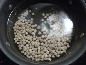 Take the twoe cup of chickpeas and boil in 5 cups of water w/salt till cooked.