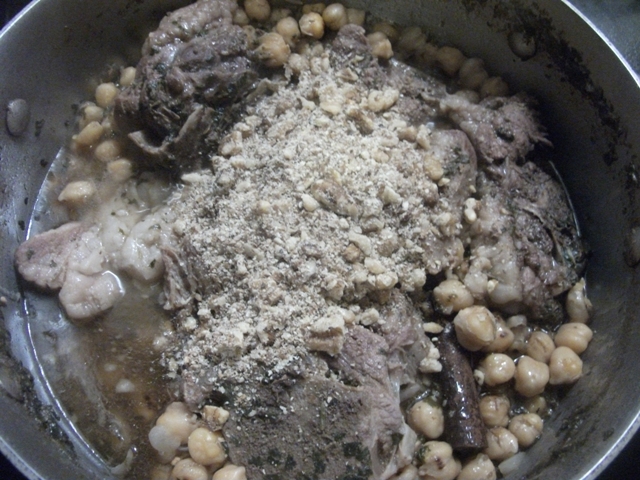 Combine the ground walnuts with the reduced stew.