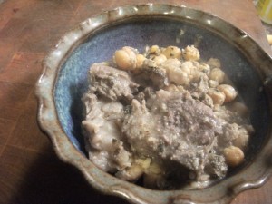 This is a very rich dish. The meat is tender and succulent while the garbanzos add a nice crunch. The walnuts add a really nice creamy thickness to the dish. Give this a try any time you have lamb on hand!