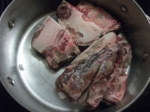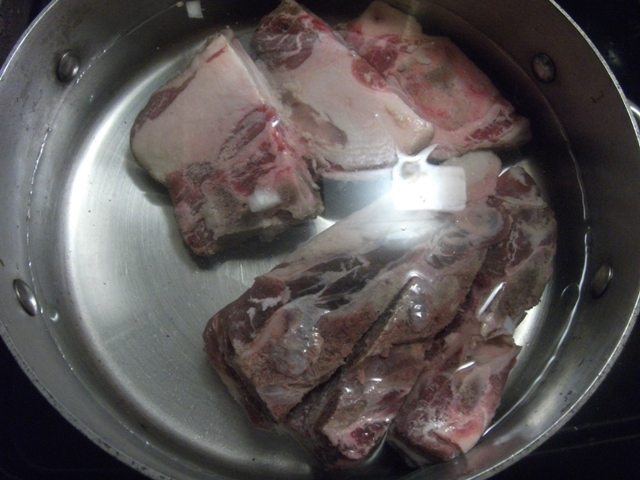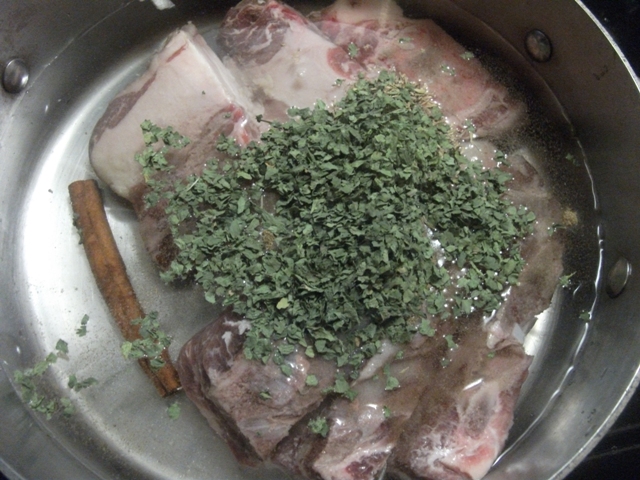 In a pot, put in the 3 lbs of lamb.
