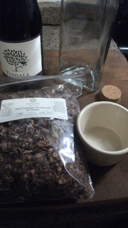 Ignore the wine and wine bottle, the main focus is the Pakistani roses used. That bag…is 4 oz or rose petals.