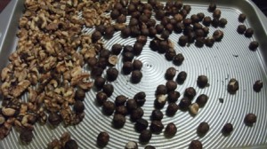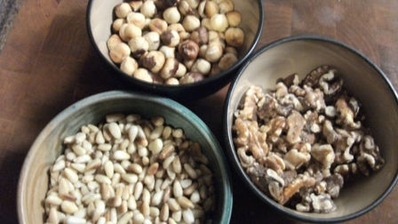Here are the roasted walnuts and unskinned roasted hazelnuts.