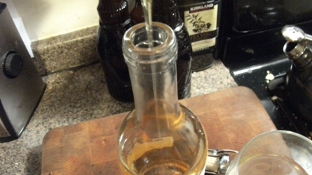 A cork was placed in the bottle and then the bottle was turned up side down a few times to help the honey mix into the wine.