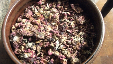 So due to the lack of space for so many rose petals, I have changed the measurements for some thing a little more reasonable for the cooking pots I have on hand.