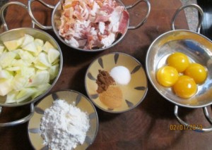 The bacon and fennel were cut into small pieces, with the egg yolk and spices added next.