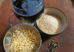 First add a little of the wine to the bread crumbs with out making a soup. 2-3 TBS should do it. Next mix in the pepper.