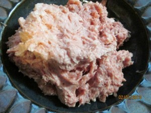 Place all the meat with some of the skin into a Cuisinart and hit grind.