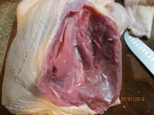 This is the start of the meat cutting. Even though a young duck doesn’t look like it has a lot of meat there should be enough after everything blended you should have roughly 8 patties, so don’t worry unless you are making dinner for 20. Then you have your work cut out for you!