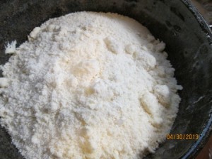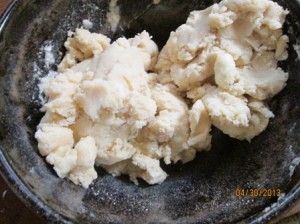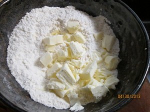till the butter is mixed with the flour and sugar in to pea sized granules.