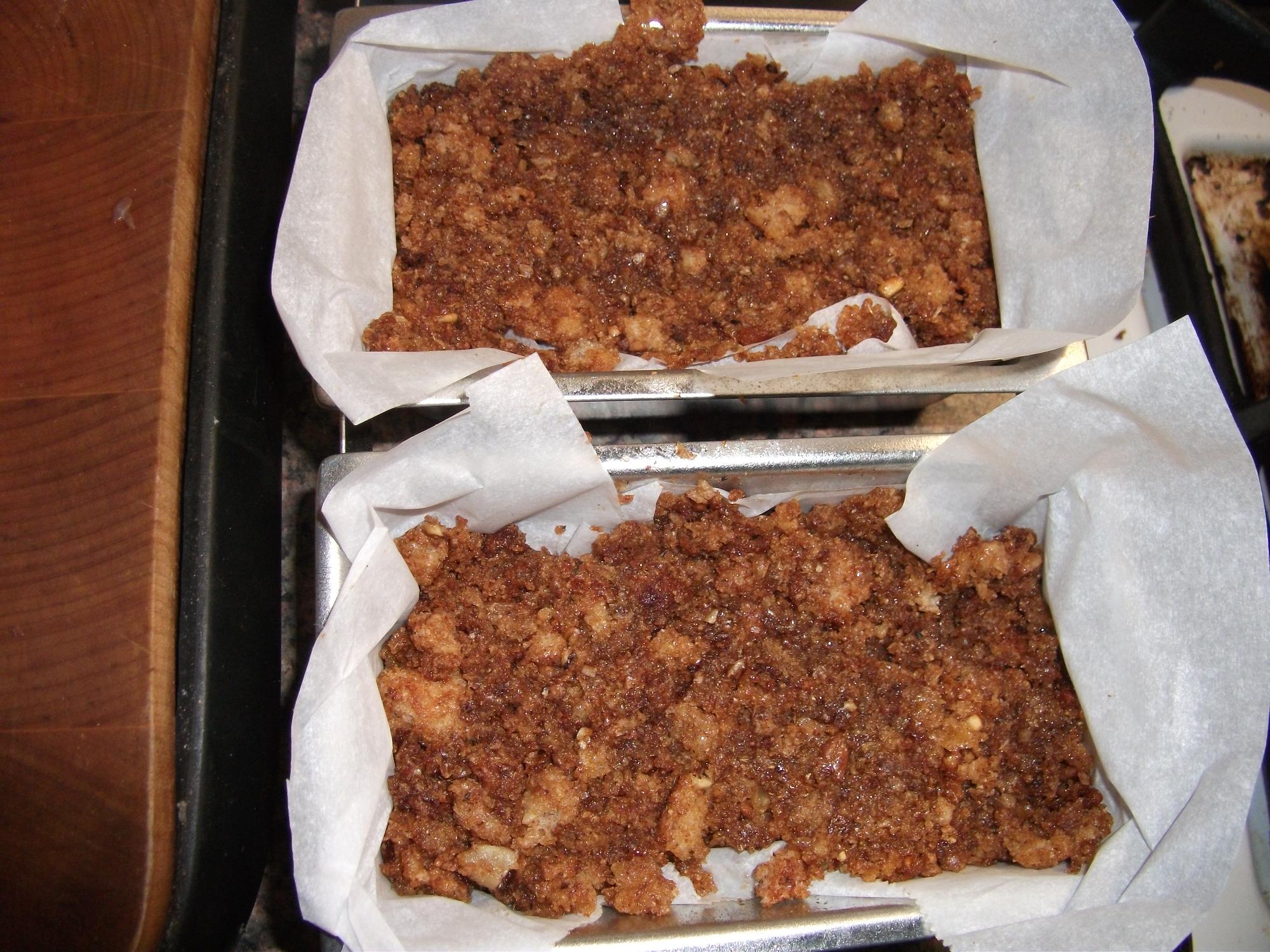 This is the gingerbread mix firmly compacted down into the mold. 2 cups of bread crumbs does not make a lot of gingerbread. So if a lot of gingerbread is desired you need to up the bread crumbs, spices and honey by a lot!
