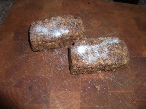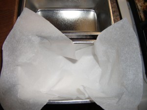 Here I used parchment paper. As long as there is a lining that can be used to pull the fudge like dessert from the mold, you’re probably going to be safe using either wax paper or parchment paper. A period mold would have been made of wood; however that takes wood and time, not some thing a lot of modern day people have access to or ability to carve well. So I went with a metal mold picked up at a kitchen shop just for the purpose of molding dough.