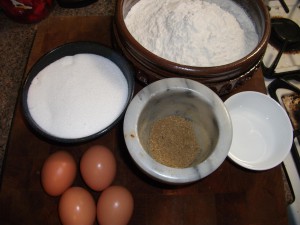 4 C. Flour 2 C. Sugar 2 tsp ground anise 2 TBS schnapps