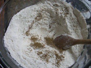 I combined the flour and sugar first,and then added in the ground anise, mixing well.