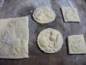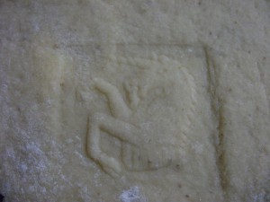 When the dough ball stage has been reached, turn out on to a well floured surface and roll to about ¼ (or slightly thicker). You want a good thickness as you have to really press the molds down to get a good definition. If the dough is to thin the dough will not be pressed into the mold.
