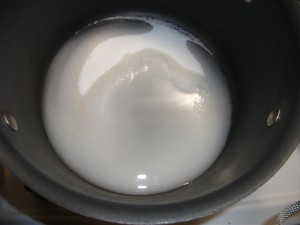 I did the almonds and the figs first. I added the sugar and water together then boiled.