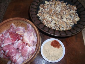 I substituted the chestnuts for walnuts as chestnuts are a seasonal item unless bought canned, which given the notoriety of canned items, I went for fresh shelled walnuts instead. Those were the two main issues that had to be changed for this recipe, other then the need to sew up the piglet from neck to anus.